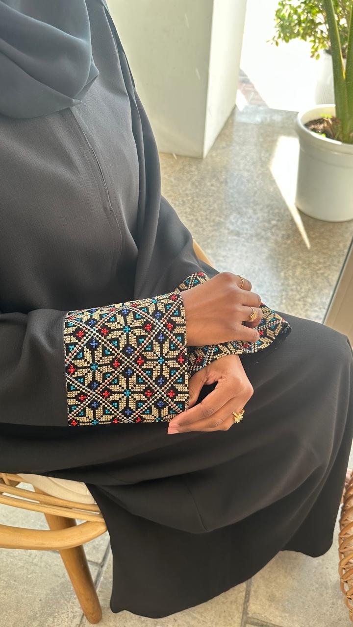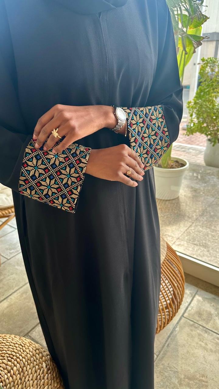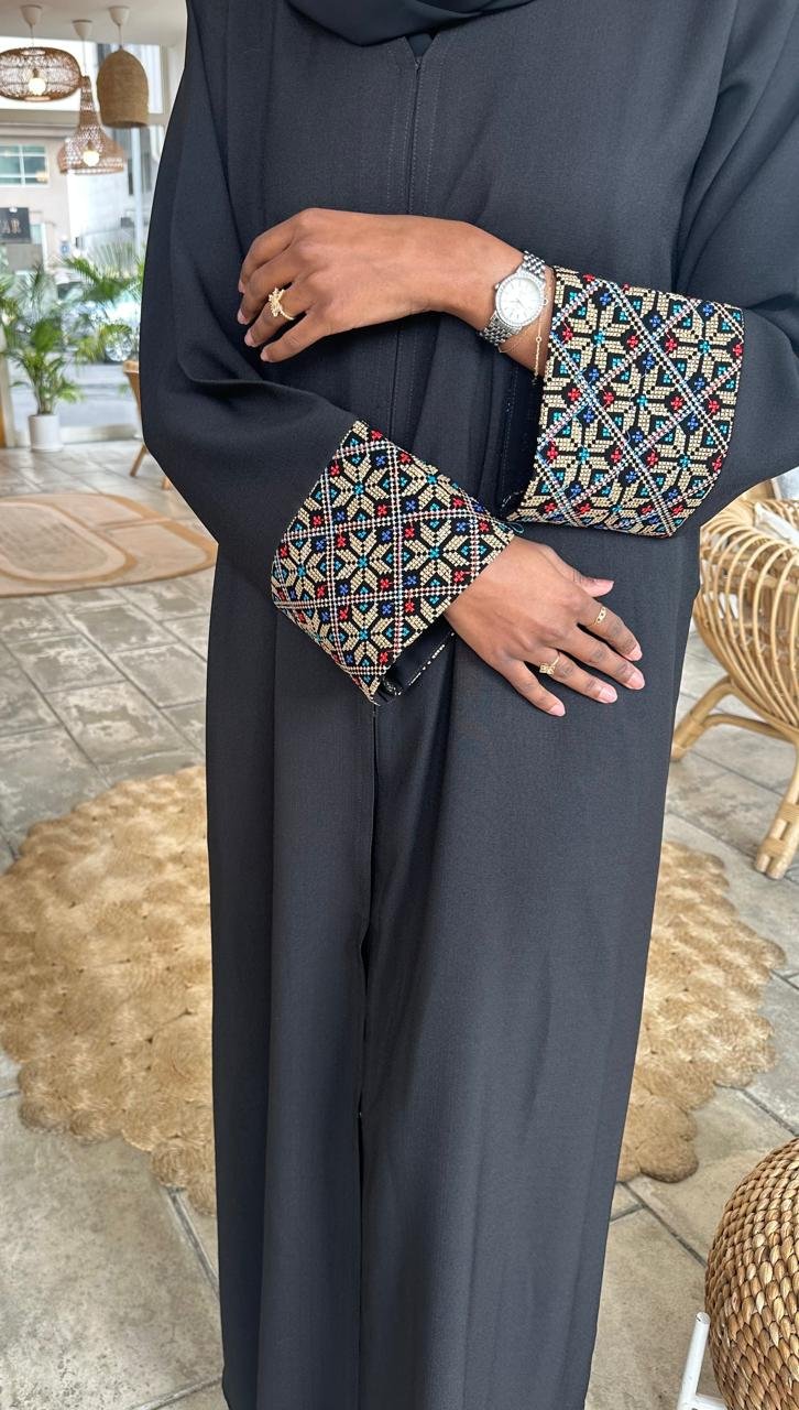عباية الأسود الملكي بتطريز يدوي مستوحى من الزخارف الشرقية ✨