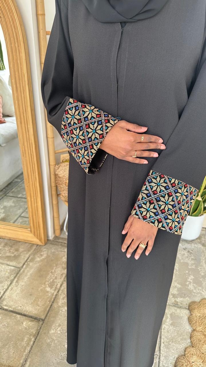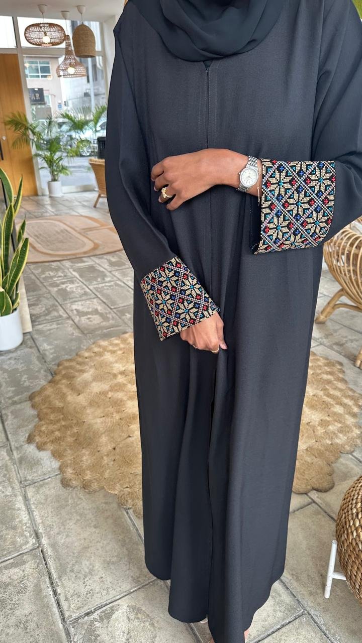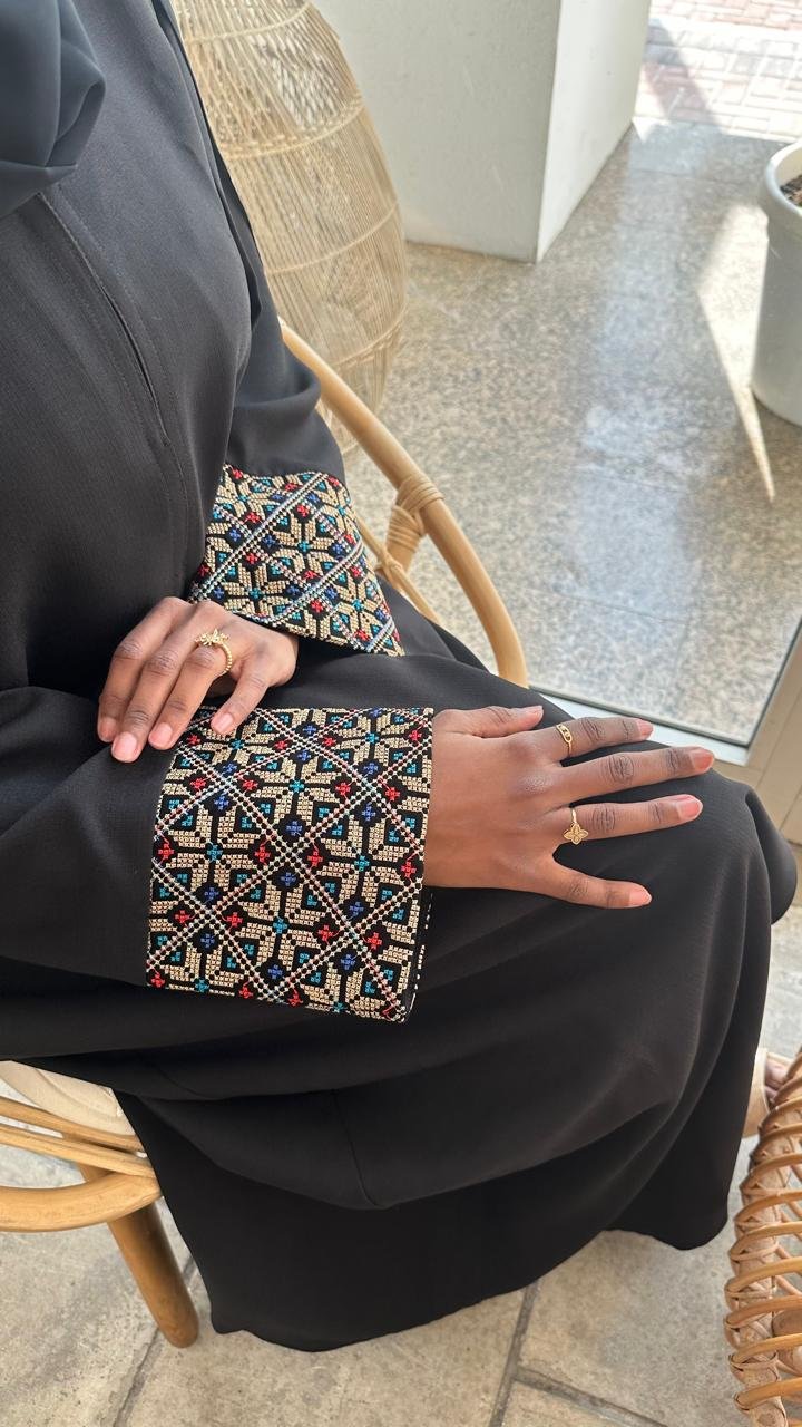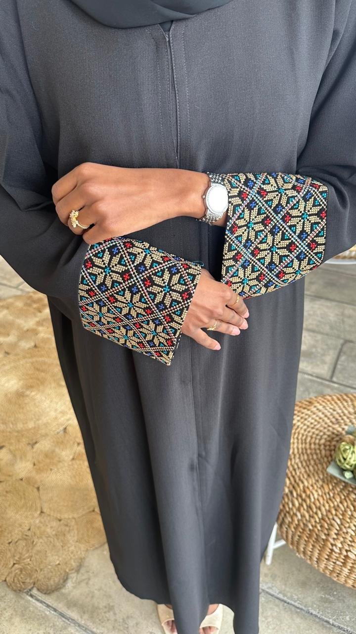 عباية الأسود الملكي بتطريز يدوي مستوحى من الزخارف الشرقية ✨